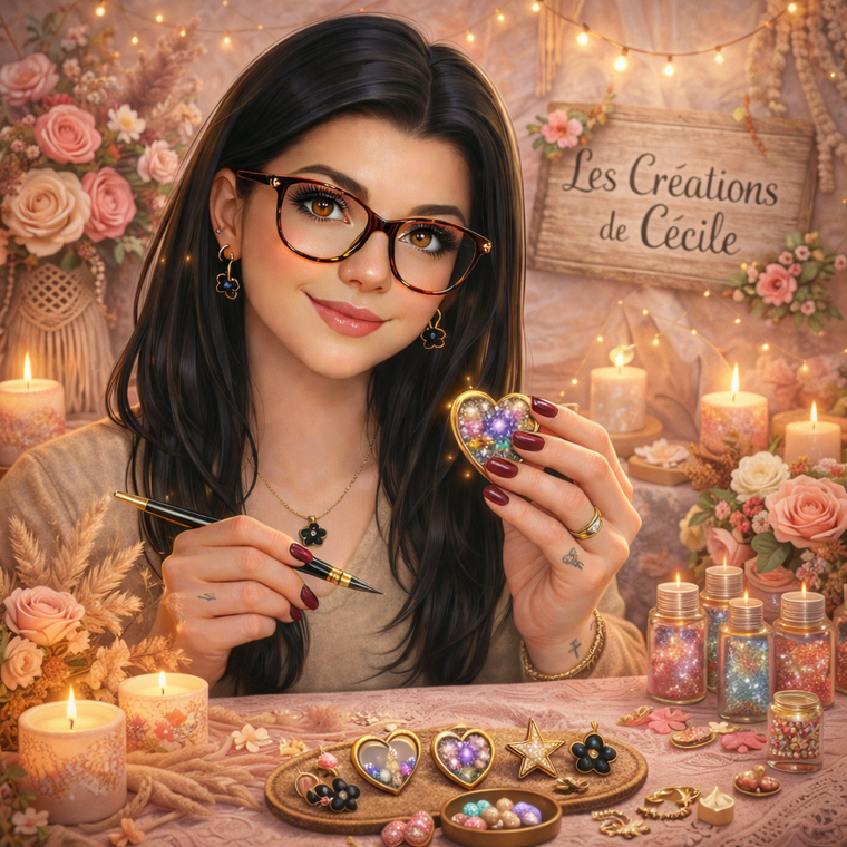Aujourd’hui, mon univers s’agrandit avec la création de bijoux en résine, imaginés et confectionnés avec la même passion et le même souci du détail. Chaque création est unique, faite avec amour, patience et créativité.